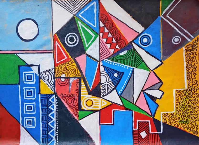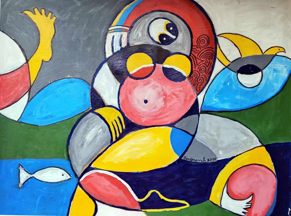 I began my formal art education at Yaba College of Technology, where I earned a National Diploma (ND) in General Art. I then proceeded to the University of Nigeria, Nsukka, for a Bachelor’s degree in Fine and Applied Arts with Education. My studio practice culminated with a Master of Fine Arts (MFA) in Painting from the University of Benin. My MFA thesis, “Exploration of Pareidolia Phenomenon for Mixed-Media Painting,” marked a pivotal point in my conceptual focus on visual abstraction and psychological interpretation.